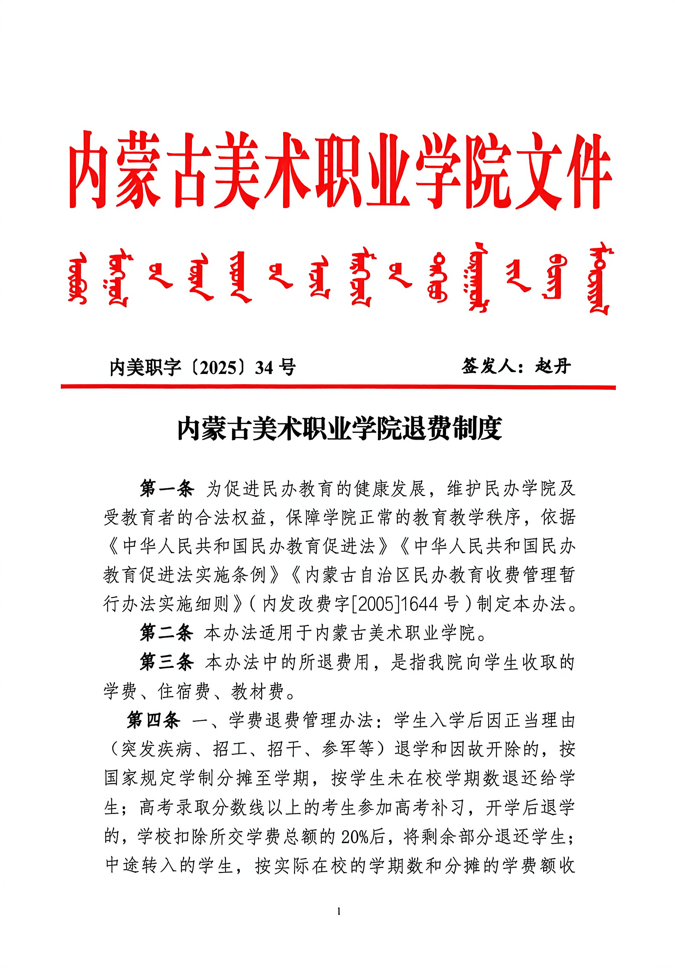 内蒙古美术职业学院退费制度